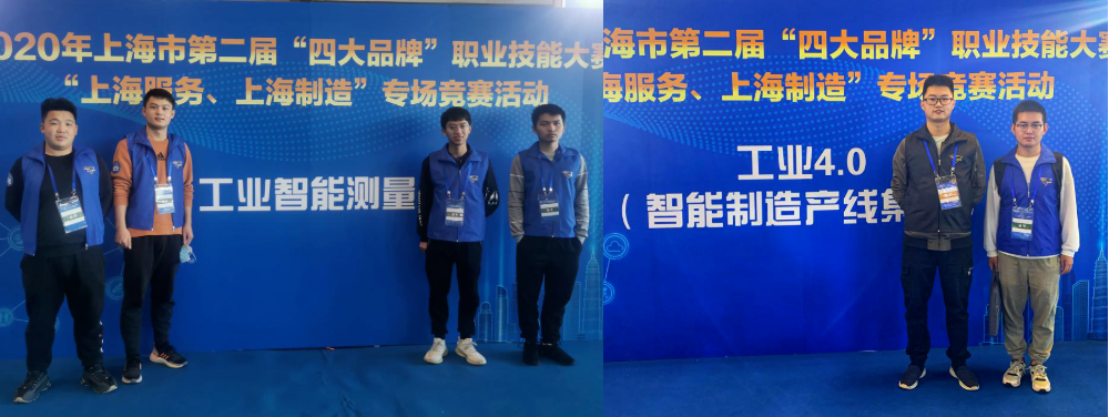 由上海市人力资源和社会保障局主办的2020年上海市第二届 “四大品牌”职业技能大赛“上海制造”、“上海服务”专场竞赛活动于11月18日在浦东上海世博展览馆举行。我校机电学院学生共参加了两项赛项,分别是工业4.0与工业智能测量,由董嘉伟老师与李洪志老师分别指导,其中朱成同学在工业4.0赛项中荣获了一等奖的好成绩,李响、郭申奥两位同学在工业智能测量赛项中荣获三等奖两项,各获得奖金4000元;李雨轩、童斌两位同学荣获优胜奖两项,各获得奖金1000元。指导教师(董嘉伟)与参赛选手(朱成)参赛选手(李响、李雨轩、童斌、郭申奥) 工业4.0智能制造产线集成大赛赛项内容主要是系统集成与调试。新一代信息技术与制造业深度融合,将使制造业的生产方式、生产组织和商业模式等发生根本性的变化,也即第四次工业革命(工业4.0)。工业4.0赛项主要有以下五个模块组成:模块A:电路分析及系统组态模块B:电路、PLC及IO检查模块C:编程及调试模块D:触摸屏程序编写模块E:PLC网络配置智能制造产线集成现场设备工业智能测量项目主要是对制造业从事机械产品质量控制与智能检测方案设计及应用的人员。竞赛选手需要掌握较全面的几何