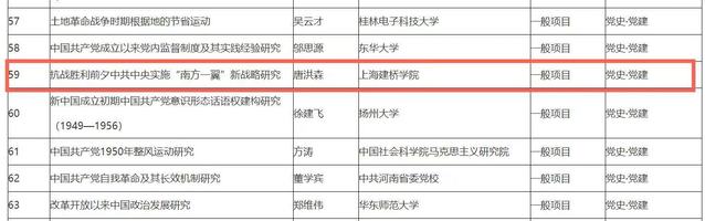 根据2020年国家社科基金后期资助暨优秀博士论文出版项目立项名单公示,我校马克思主义学院唐洪森教授申报的“抗战胜利前夕中共中央实施‘南方一翼’新战略研究”获得党史·党建类一般项目立项,资助金额25万元。该项目是马院首次获得国家社科基金项目资助,取得零的突破。国家社科基金项目是全国哲学社会科学研究领域层次最高、权威性最强、竞争最为激烈的项目,在人文社科领域具有导向性、权威性和示范性,该项目立项数是评价高校人文社科研究水平的重要指标之一。项目获得国家社科基金后期资助项目立项与马克思主义学院高度重视科研工作密切相关。马院近年来不断加强内涵建设,引进高质量师资,高度重视科研项目申报工作。学院鼓励各位老师积极申报各类科研项目,通过申报动员、同行交流、院内评审等机制的建设,严把申报质量关。项目负责人简介:唐洪森,教授,曾任浙江海洋大学党委宣传部部长,主要研究中国近现代史,已出版专著《国共争战大东北》《新四军重建江南大营》《登步三日》《中国工农红军抗日先遣队史》等,合著《解密里斯本丸》《国民海洋观》等,在《中共党史研究》、《抗日战争研究》、《中国社会科学(内部文稿)》、《社会科学战线》、《近代史资