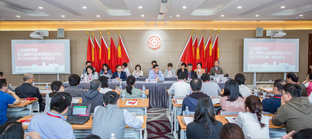 10月31日下午,我校举行第三届教代会暨第四届工代会第三次会议第一阶段会议,审议并通过了《上海建桥学院关于2019年增加工资的实施细则》。校长朱瑞庭,副校长周健儿、郑祥展,校长助理陈伟,正式代表103人、列席代表16人出席会议。副校长、党委副书记、工会主席夏雨主持会议。会上,举手表决通过了《上海建桥学院第三届教代会暨第四届工代会第三次会议第一阶段会议表决办法》,通过了大会工作人员名单;会上还以无记名投票方式高票通过了《上海建桥学院关于2019年增加工资的实施细则》。(夏雨主席宣读大会决议)大会决议指出,本次工资增资幅度较大,惠及所有教职工,大大提升了教职工获得感,调动了教职工积极性,有利于学校新一轮的建设发展。会议号召,全校教职工要继续深入学习贯彻习近平新时代中国特色社会主义思想,围绕学校发展战略,抓住学校发展机遇,发扬主人翁精神,发挥积极性和创造性。不忘初心,牢记使命,立德树人,奋发进取,以最好的成绩和状态迎接本科教学审核评估,高质量完成学校“十三五”发展规划确定的战略目标。朱瑞庭校长向代表们介绍了近期学校本科教学审核评估工作和“不忘初心、牢记使命”主题教育开展情况,并对此次增加工资