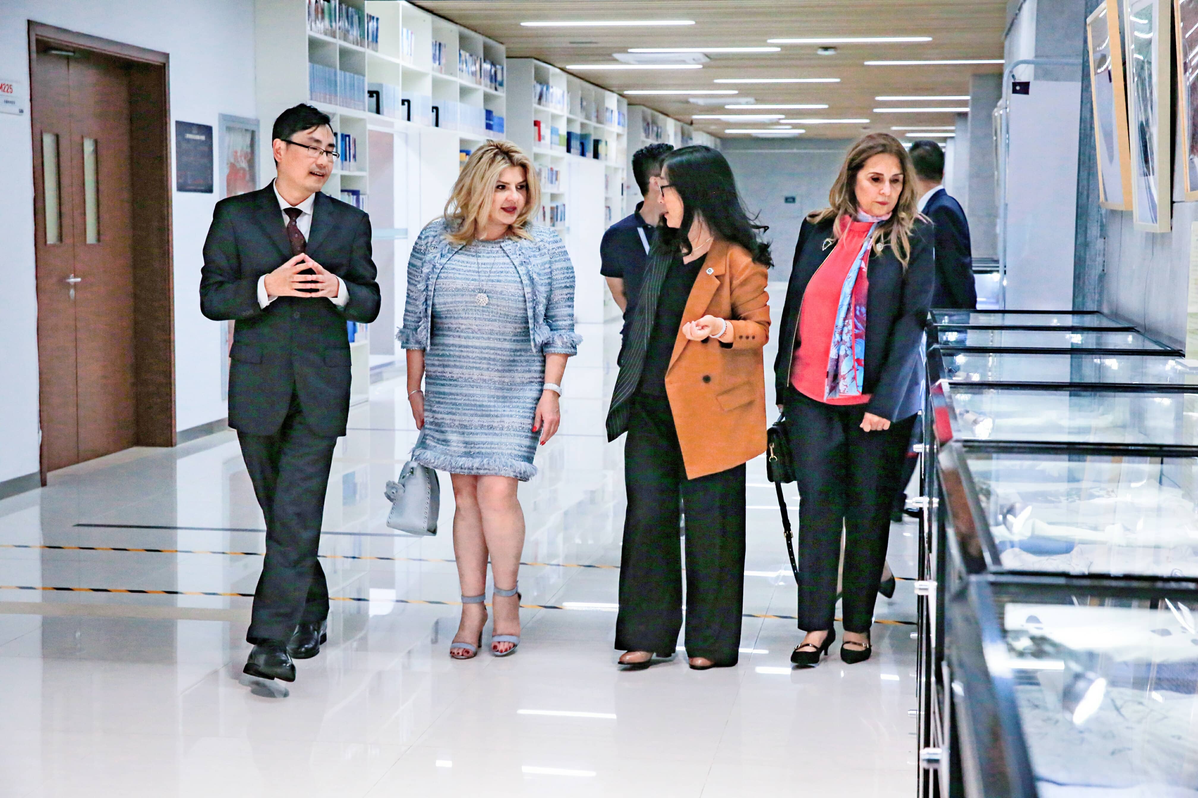 10月23日,美国内华达州拉斯维加斯市常务副市长米雪儿·佛箬睿、副市长维多利亚·西曼一行来访上海临港,期间专程到我校参观访问,探讨与我校在珠宝、旅游、会展等相关领域的教育合作可能性。我校校长朱瑞庭出席并接待了政府访问团一行,珠宝学院、艺术设计学院、对外交流办公室等相关人员陪同参观。访问期间,朱瑞庭校长对拉斯维加斯市政府代表团到访表示热烈欢迎,他向米雪儿·佛箬睿常务副市长一行介绍了上海建桥学院的历史概况、办学特色等,并带领代表团前往学校图书馆,参观我校珠宝和艺术作品展览。在交谈中,朱瑞庭校长还向客人介绍了中国(上海)自贸试验区临港新片区的基本情况,描绘了新片区到2035年建成“开放创新、智慧生态、产城融合、宜业宜居”现代化新城的愿景。米雪儿·佛箬睿对我校的校园环境、学生作品等表示充分的肯定,她表示上海和拉斯维加斯都是国际知名的城市,双方在很多领域都可以相互合作,取长补短。拉斯维加斯每年接待游客达到5000万,每年一届的拉斯维加斯国际珠宝展(JCKShowLasVegas)是全球最具影响力的高端珠宝展览;拉斯维加斯市在酒店、娱乐休闲、会展等方面有着丰富的经验和优质资源,有全球最好的酒店管理