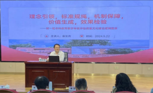 2024 年 5 月 22 日,上海建桥学院于珠宝学院会议厅举办了2023-2024 春季学期第三次教学科研例会。副校长陈剑峰、陈峥以及教务处、学生处、资产管理处、科研处各处长出席本次会议。 会议第一项由来自广东外语外贸大学的袁长青教授进行主题为“新一轮审核评估视角下的教育质量文化建设”的讲座。袁教授指出树立国际先进的质保理念以引领质量文化,主要是全面质量管理理论和OBE教育理念。制定明晰健全的质量标准以规绳质量文化,结合专业建设的国家标准和本校规章制度来建立健全的质量标准。建立运行有效的质保机制以保障质量文化,学校应设有能够独立行使监控职责的质量监控部门,明确其职责任务,建立一支水平高、数量充足、结构合理的质量监控队伍,对日常教学工作进行检查、监督和指导,不断加强教学督导队伍建设。塑造师生共同的价值追求以生成质量文化,学校要构建自觉、自省、自律、自查、自纠的大学质量文化,把其作为推动学校不断前行,不断超越的内生动力。开展“五个度”的调查以检验质量文化。完善保障体系“六有”要素,促成质量保障从监控走向支持服务、从经验走向科学、从制度走向文化。同时,注重保障体系的不断完善和迭代升级,加强
