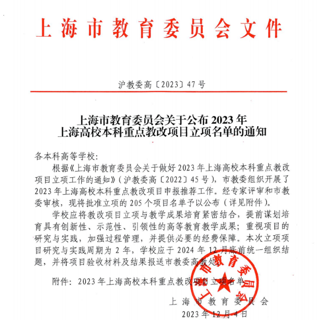 我校2个项目获2023年上海高校本科重点教改项目立项