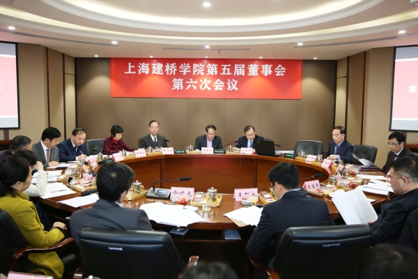 第六次会议。2017年11月17日召开(图书馆M612),会议的主题为“加强学校治理能力建设,推动学校更好更快发展”。会议投票表决通过了聘任朱瑞庭同志担任上海建桥学院校长的提议。会议同时还聘任俞晓光同志担任上海建桥学院副校长,增补周健儿同志为上海建桥学院董事。会议听取并审议周健儿副校长关于智能制造2025产教融合项目进展情况报告。会议听取并审议了朱瑞庭同志作的校长工作报告。会议听取并审议通过了郑祥展副校长关于二期工程建设的情况报告、关于物业管理费调整的情况报告。会议审议了关于筹建上海建桥学院监事会的议题。会议听取了教师代表胡银平关于重视青年教师落户问题的议案。会议听取了学生代表关于提高学生事务办事效率的提案。周星增董事长主持。副董事长黄清云、郑祥展、蒋威宜,董事朱瑞庭、江彦桥、施银节、陈智勇、张家钰、陈伟、周健儿出席。校决策咨询委员会主任、校长遴选委员会组长,发展委员会委员,董事会秘书列席会议。教师代表胡银平、刘爱香,学生代表苏浩天、蒋思悦应邀旁听会议。