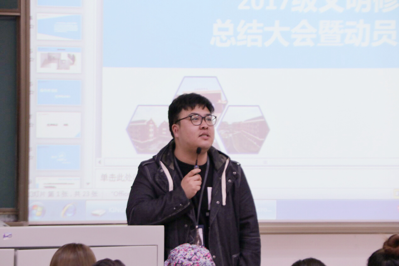 首先,上学期优秀学员代表孙昊同学简单总结了学院文明修身情况,分享了他对文明修身活动意义的理解,并提倡新一批文明修身学员要认真对待该项活动。接着,新闻传播学院总学导张莎莎同学介绍了上海建桥学院文明修身的发展历史,并详细地说明2017级文明修身具体要求,如文明修身课程时间安排、工作区域和考核标准等。