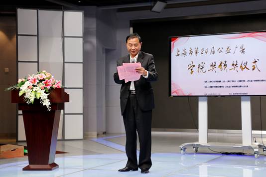 3月30日,上海市广告协会第24届公益广告学院奖颁奖仪式在新闻传播学院演播厅隆重举行,上海公益广告创新研究发展中心常务副主任冯修文主持会议并宣布颁奖仪式开始。