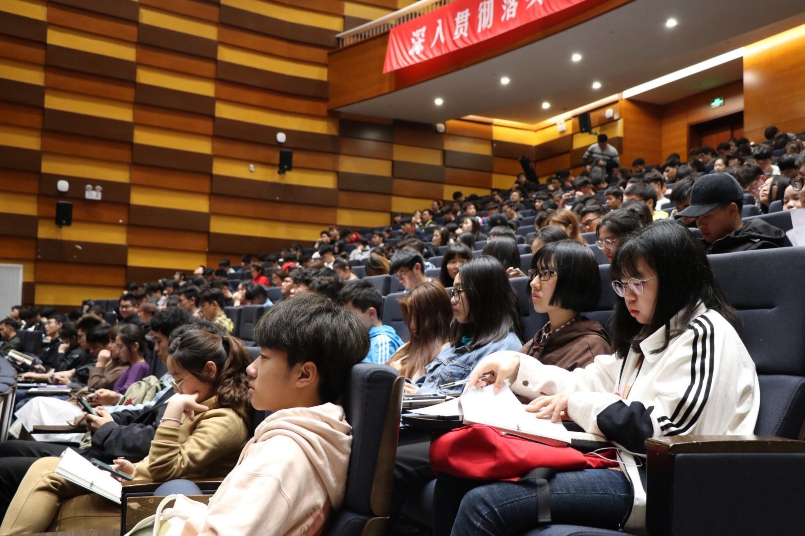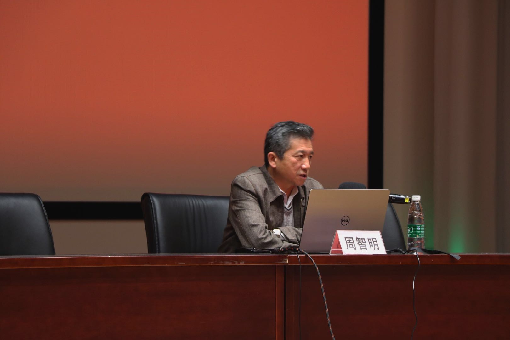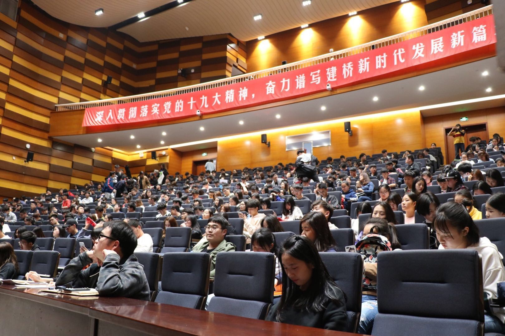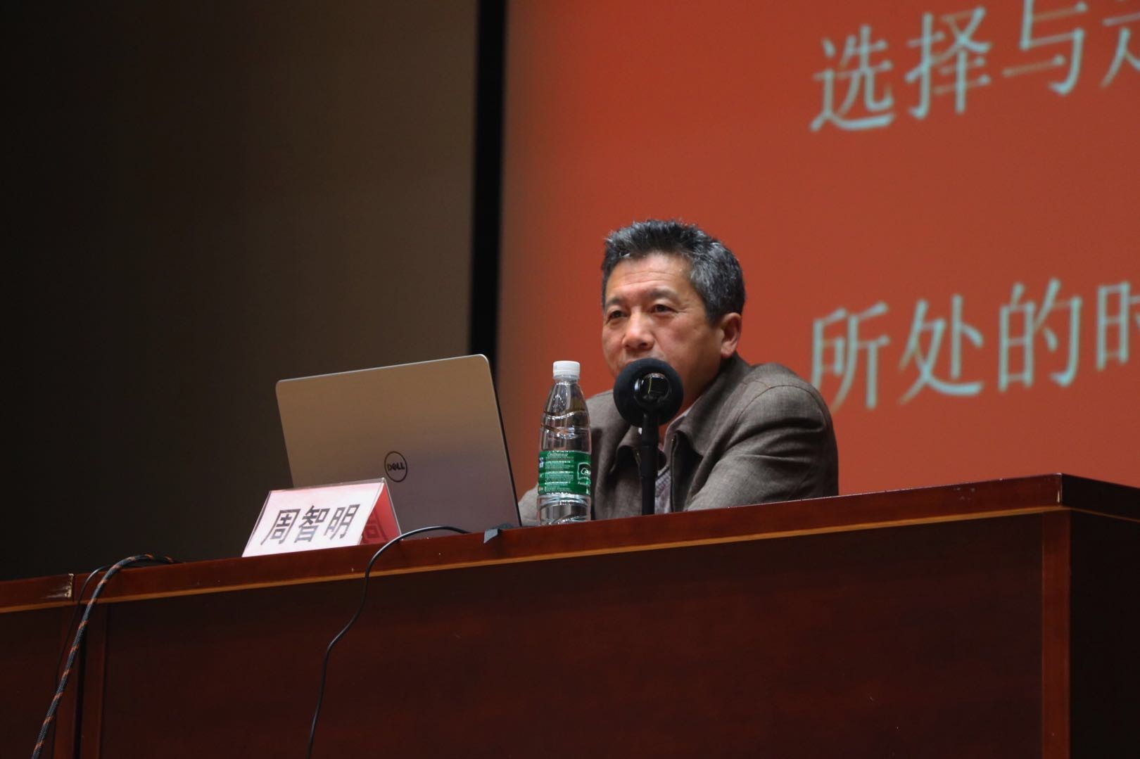 4月3日,第二十五期高级团课第四讲在校大礼堂举行,本次讲座主题为“学习总书记系列讲话,争做‘六有’大学生”,由艺术设计学院党总支书记周智明主讲。