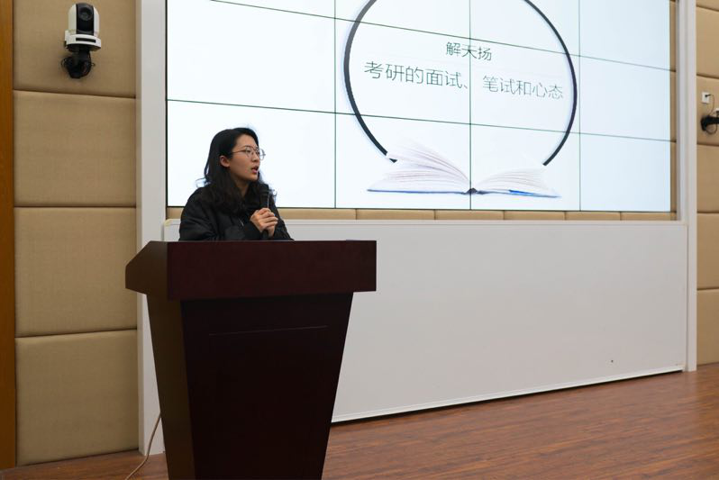 随后,交流会进入考研介绍环节,主持人为同学们全方位的介绍了考研的主要学科、准备程序、命题情况、复习方向、报名时间、笔试、初试以及调剂。