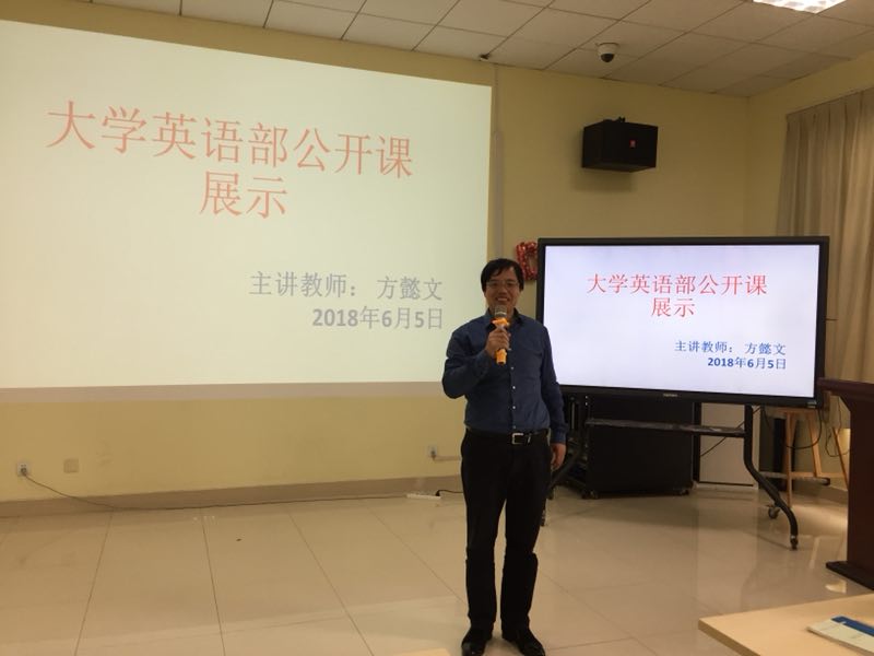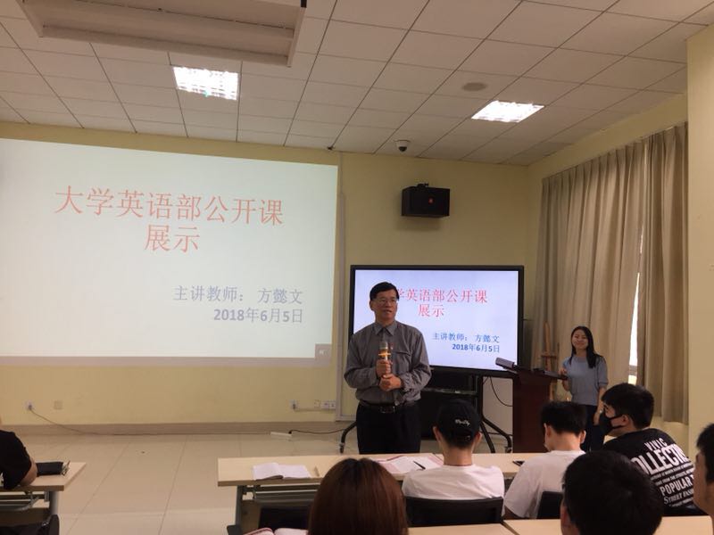 6月5日,外国语学院大学英语部公开课展示活动在学院楼129室举行。此次公开课由大英部方懿文老师主讲《大学英语4》 Unit 1 The Icy Defender,来自全校各学院的50多位16级学生作为授课对象参与公开课。外国语学院党总支书记杨大亮教授,大英部主任陈永明副教授,孔辉副主任及大英部十多位老师到场观摩。