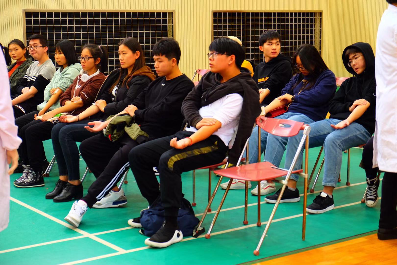 11月22日下午,高职学院115名学子在体育馆参加了献血活动。学院党总支副书记潘明芸和辅导员们亲临现场,慰问各位献血者。