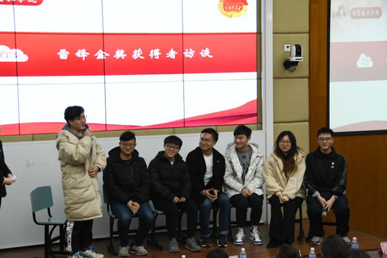 随后,数媒技术B18 -3班的同学们为大家表演了情景剧,将我院的党建中心红色服务队志愿者、雷锋馆志愿者、老年人数码课志愿者、机房打扫志愿者的日常工作缩影呈现在了大家眼前;七位荣获雷锋金质奖章的学长学姐们对于雷锋精神的分享,也进一步使信息学子们认识到学雷锋行善更需要细水长流,授人玫瑰、手流余香。