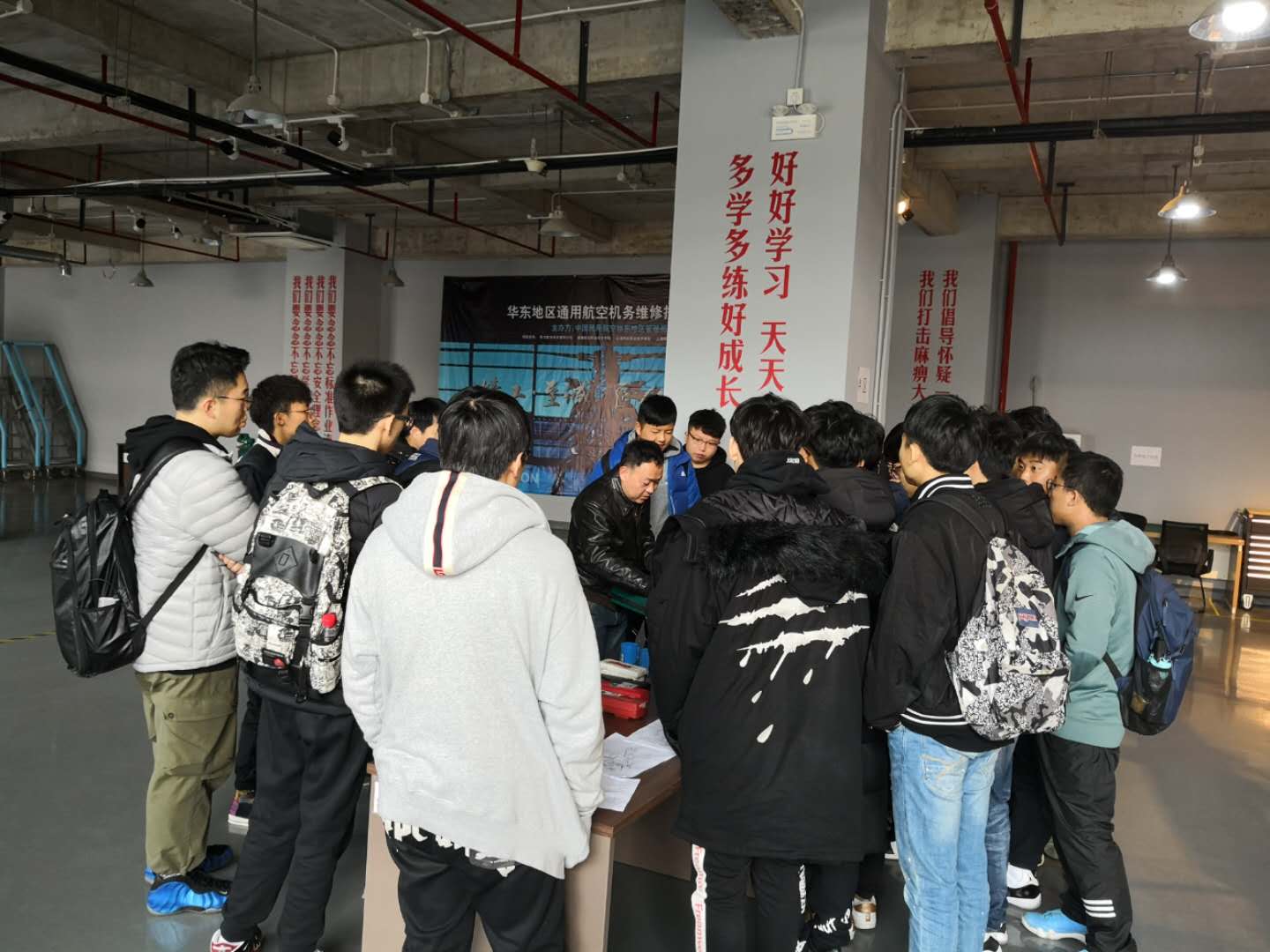 本次参观累计6个小时,共包含两个环节。首先,总工程师郭鹏飞先生为学生讲解航空基本知识、我国航空的发展历史和前景、行业人才需求,以及目前国内外航空领域资格证书体系。讲座中,郭鹏飞重点强调了民用航空中“安全”永远是第一宗旨,并指出航空维修人员的诚信理念和工匠精神对维护航空安全的重要性。随后,维修经理为学生演示航空维修的专业工具及使用方法,并结合现场的直升飞机讲解了飞机构造原理及航空维修人员的工作内容。