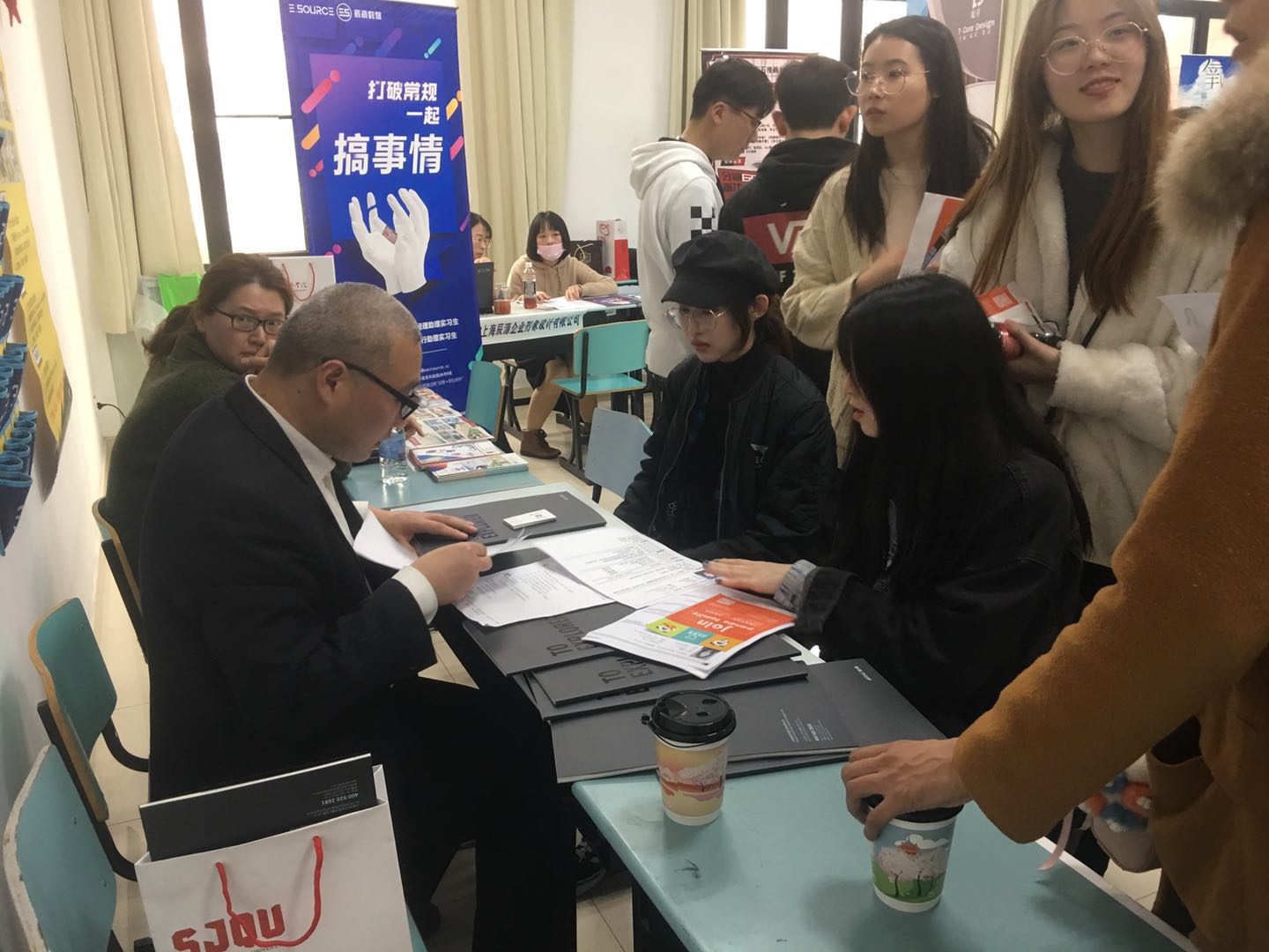参加本次招聘会有20余家公司,其中包括上海庭祥建筑装饰设计有限公司、上海黄浦区东方童画培训学校、上海聚通装饰集团有限公司、上海海昌极地海洋世界有限公司等,其中多家为我院的校企合作单位。招聘企业提供了品牌设计师、漫画设计师、平面设计师、美术教师等共计200多个岗位。本次招聘会为大四学生提供了多元实习、就业机会,大三学生积极参与,提前了解市场需求,为明年的就业做充足准备,本次参会学生人数大约300人。