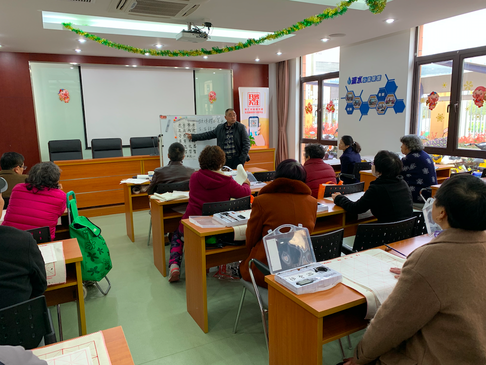 古墨轻磨满几香,砚池新浴灿生光。书法是中国优秀传统文化,也是社区居民互相交流的文化“纽带”。宜浩欧景家门口服务站与我校继续教育学院“老年颐养学堂”项目共同合作搭建平台,挖掘和发挥宜浩欧景“人才社区”优势,以社区居民自我服务的形式为小区书法爱好者开设“颐养学堂”中老年书法课程。