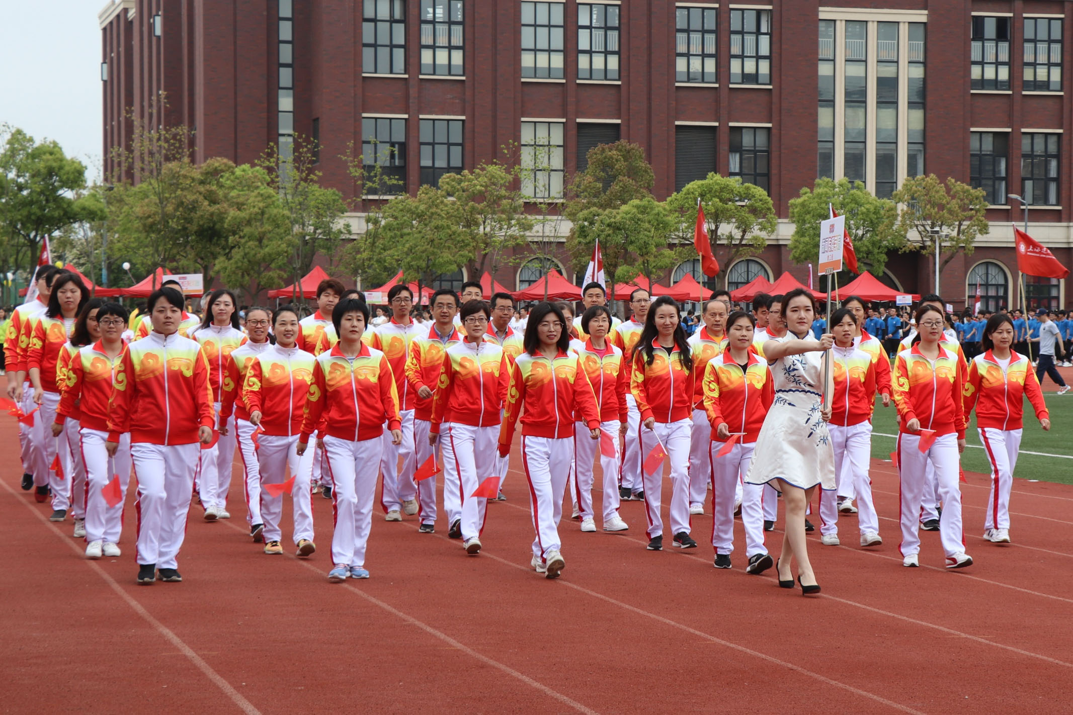 4月25日,上海建桥学院举行第十九届春季运动会。伴着激昂的乐曲,新闻传播学院的教职工和学生代表队迈着整齐有力的步伐,意气风发,进入会场。