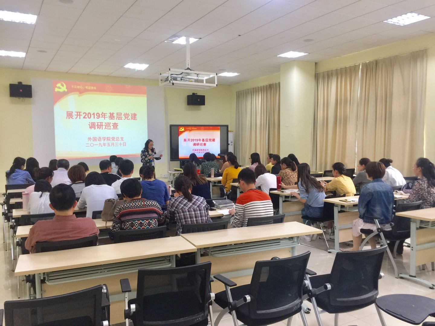 5月30日中午,外国语学院党总支在外国语学院129室召开全体党员大会,会议由外国语学院党总支书记江萍副教授主持。