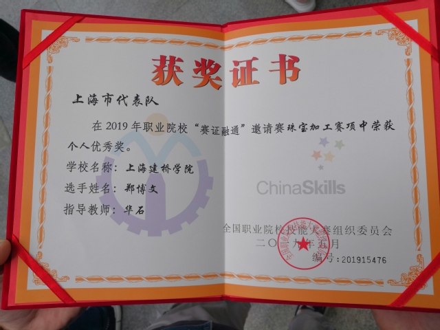近日,由中国珠宝玉石首饰行业协会申报牵头的2019年全国职业院校技能大赛高职组珠宝玉石鉴定赛项和2019年职业院校“赛证融通”邀请赛珠宝加工(金属首饰手工制作)赛项(以下简称“大赛”)在兰州资源环境职业技术学院圆满举行。珠宝学院陈征副教授受邀担任珠宝玉石鉴定赛项裁判。珠宝学院华石老师带队,学生郑博文参加珠宝加工(金属首饰手工制作)赛项。选手郑博文荣获珠宝加工赛个人优秀奖的优异成绩,此次参赛系我校首次参加此类竞赛。