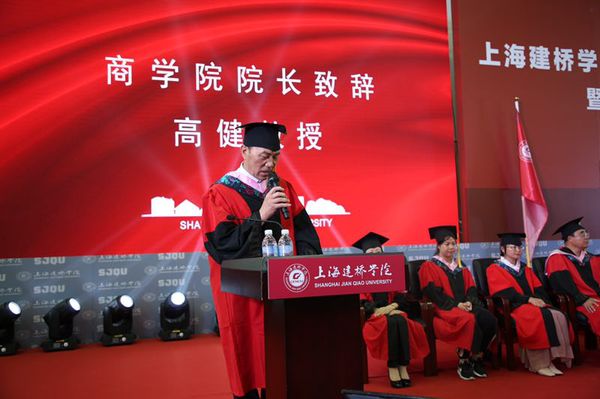 首先,高院长表达了对各位毕业生的祝贺以及对他们父母的感谢,对他们四年大学生活的付出与努力给予肯定,对即将踏入社会的毕业生们,他分析了当今社会日益增长的竞争力,鼓励同学们要勇于面对未来各种未知的挑战。牢记“感恩、回报、爱心、责任”校训,欢迎毕业生们常回建桥看看,常回商学院看看。祝愿毕业生们生活美满,事业顺达。
