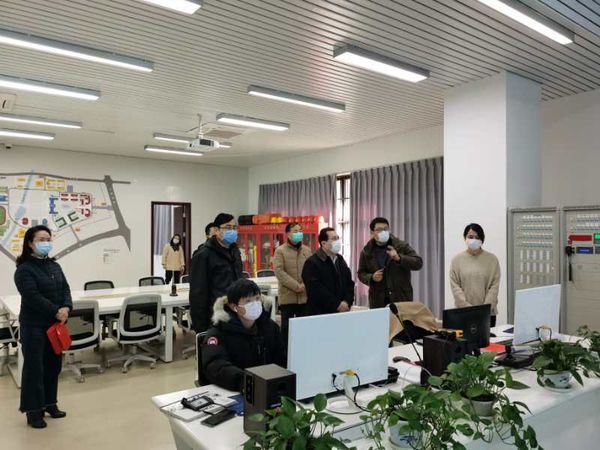 沈炜书记一行还实地参观了学校应急指挥中心、防疫物资仓库,听取了学校信息化部门关于“建桥i健康”系统的情况介绍。