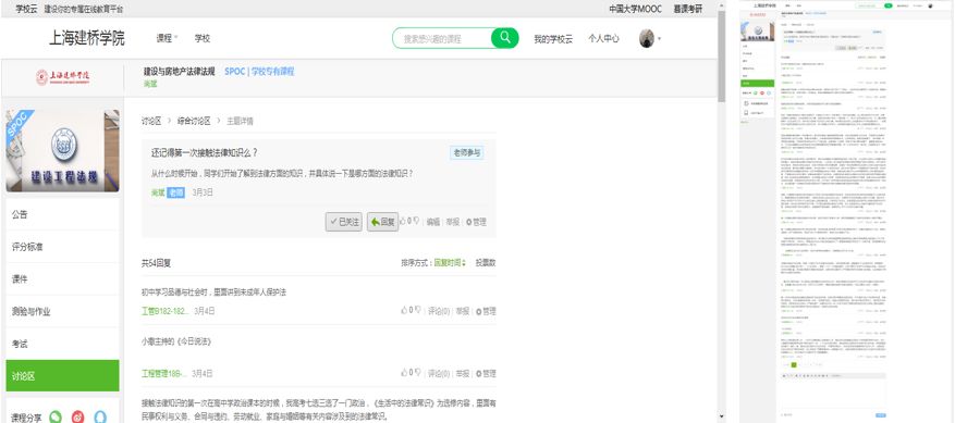 尚斌老师在慕课讨论区与学生们探讨“第一次接触法律知识”