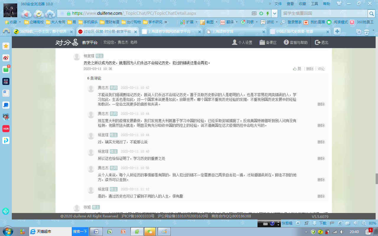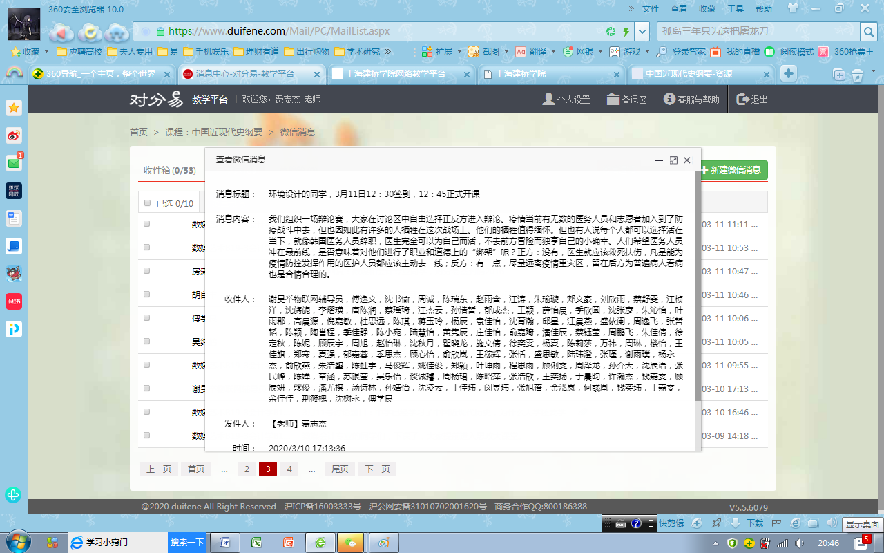 费志杰是马克思主义学院今年新进的一位副教授。初来乍到,适逢此次抗疫背景下思政课的在线教学改革。费志杰适应新形势的需要,及时调整教学方案,把在线《中国近现代史纲要》课程讲得有声有色。