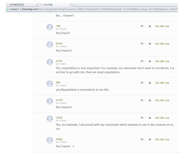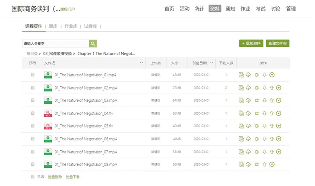 本学期的《国际商务谈判》是全英语课程,以常健聪的上海市全英语示范课程项目为依托,教学的同时研究全英语教学方法的改进、教学效果的提升,教学研究与实践互为补充,共同促进。根据线上授课试运行期间,学生在签到后台给老师的留言发现,一部分学生对于参加全英语课程是有一定困难的,故此他采用了课前预习的方式。上课前至少一周,在课程网站上发布上课的PPT、录播视频、外教全英语讲座等相关材料,供同学们课前预习,并且布置相关的作业等任务,深化同学们对知识的掌握与了解。