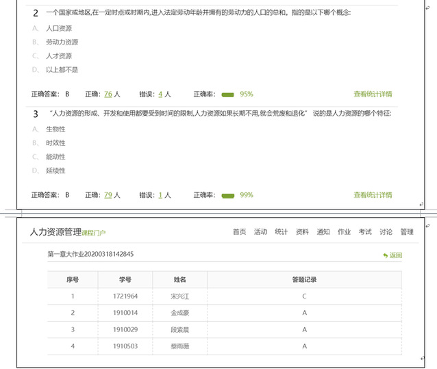 7、配套的习题库(人力资源管理873题、管理学534题):随时可以自动或手动生成作业库和试卷库。习题库对在线授课的重要性无论怎么渲染都不为过。有了习题库,可以有针对性的布置预习任务、随堂测验、课后巩固、学生自测、在线考试等。(下面以人力资源管理为例)