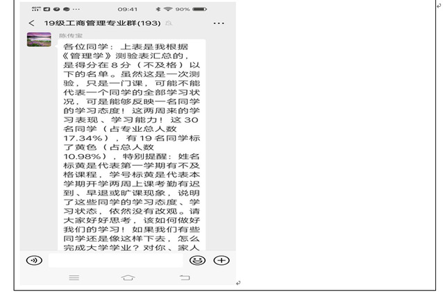 2)成立课程管理团队:建立包括所有同学、辅导员、授课老师的微信群。建立由班委组成的课程管理微信群,作用十分显著。
