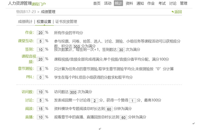 为了全方位立体考核学生的学习状况,同时培养学生良好的自学习惯、自学能力,可针对不同课程特点,设置成绩权重,提前告知并随时提醒同学们。