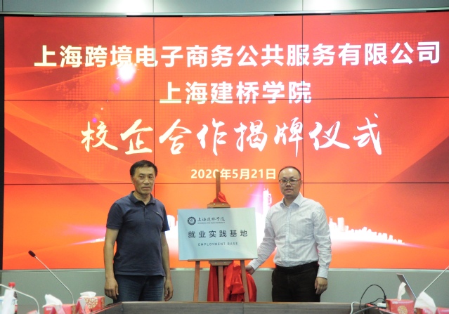 5月21日,我校与上海跨境电子商务公共服务有限公司校企合作揭牌仪式暨线上企业宣讲会顺利举行。上海跨境公服总经理吴斌、副总经理顾红春,上海建桥学院商学院院长高健、副院长尹卫华,以及特邀嘉宾上海别样秀数据科技有限公司中国区负责人吴欣等出席活动。揭牌仪式由上海跨境公服管理部总经理成茜主持。