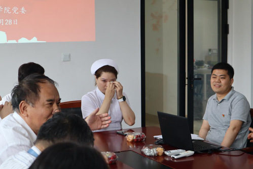 微党课赢得了大家的热烈掌声。入党介绍人程晨老师表示,听完诸玫琳的援鄂历程,内心感慨万千。作为诸枚琳的入党介绍人,在2020年1月新冠病毒爆发之时,知道她要支援武汉的时候由衷的感到非常自豪,但作为老师内心也很矛盾,为她的安危担忧。诸枚琳是2012级护理的的毕业生,其实之后的几届毕业生也有很多积极主动报名参加支援的,有些未到武汉的同学主动申请调到医院发热门诊等,用实际行动印证了他们入党时的誓言。