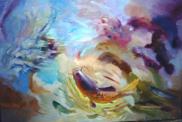 为了彰显和表达临港这座新城的灵魂,艺术展邀请到上海著名海派油画家金柏松先生带来《大鱼天地》系列油画,意喻讲述着临水而兴的港城之过去、现在与未来,也体现新片区鱼跃前进的精神和风貌。