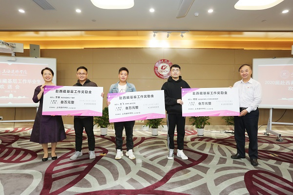 欢送会上,校领导为赴西藏基层工作的毕业生发放了慰问金并赠送礼品。