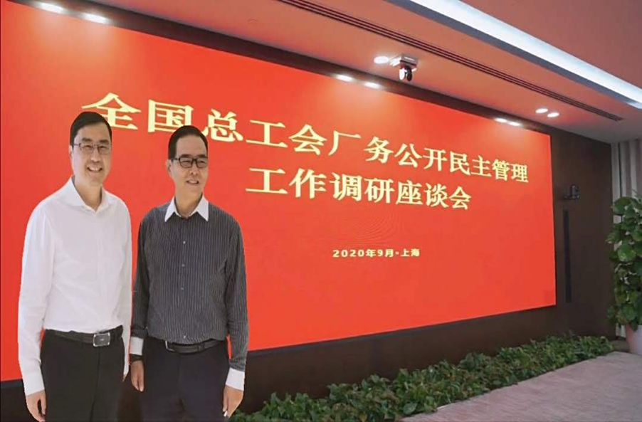 9月29日下午,全国总工会厂务公开民主管理工作调研座谈会在上海市中建八局会议室举行,全国总工会副主席、书记处书记、党组成员蔡振华,上海市人大常委会副主任、市总工会主席莫负春,全国总工会基层工作部部长金善文,全国总工会基层工作部二级巡视员陈超迪,全国总工会基层工作部民主管理处处长钱鑫,上海市总工会副主席张得志,上海市总工会副主席郭菁,上海市总工会劳动关系工作部部长周永宝等领导出席会议。中国建筑第八工程局有限公司、东方国际(集团)有限公司、闵行区吴泾镇、上海建桥学院、上海三菱电梯有限公司等五家单位在会上做了交流发言。