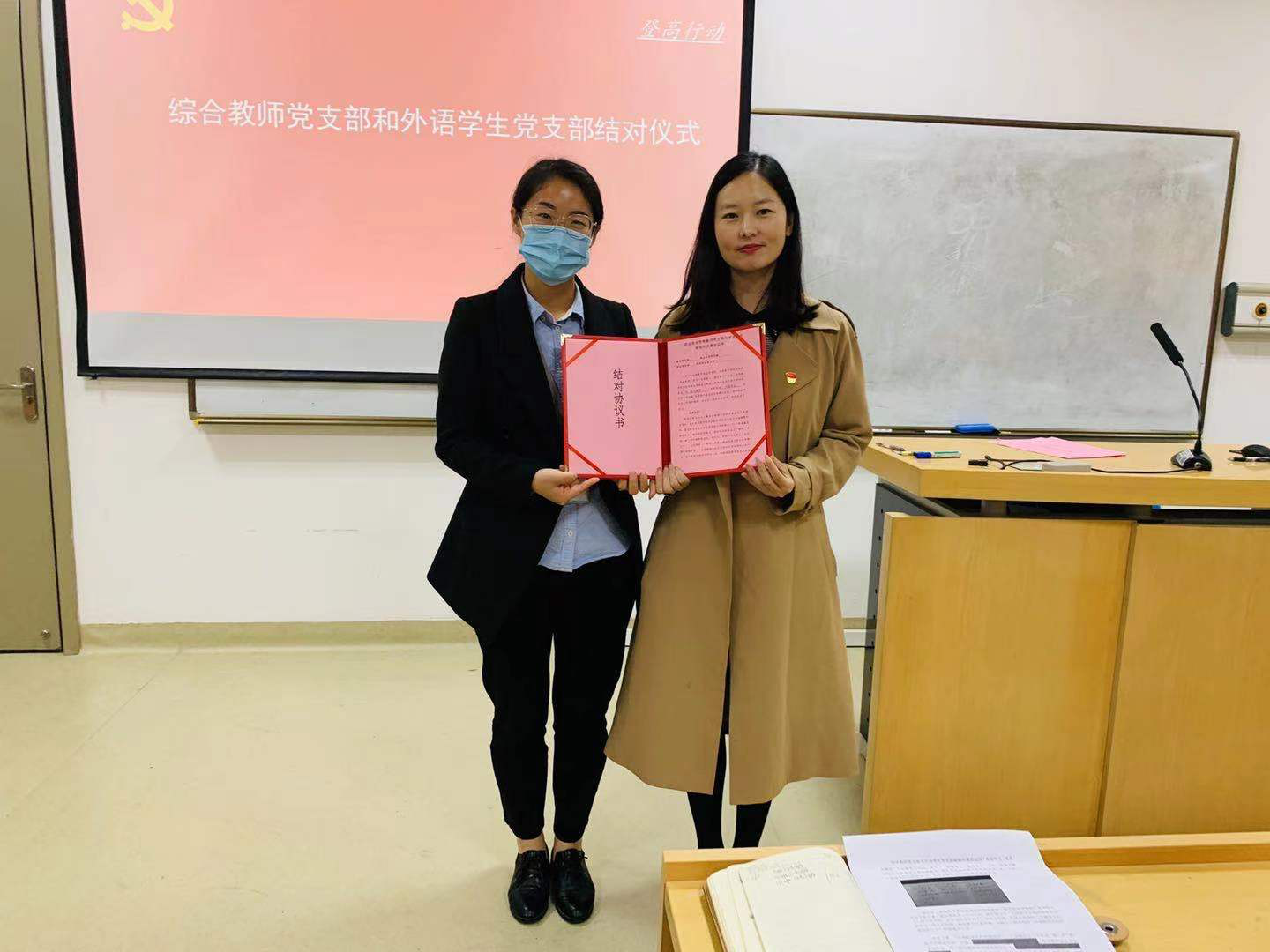 主题党日活动上,综合教师党支部和外语学生党支部签署《教师党支部与学生党支部结对共建协议书》,与会师生认真阅读相关实施方案和协议内容后,职业技术学院党委书记王加宁、综合教师党支部书记臧玉洁和外语学生党支部潘明芸正式签署了协议书。臧玉洁书记指出,本次共建以结对共建活动为载体,探索师生党支部之间优势互补、资源共享、共同发展的党建新思路,按照“以共建促党建,以共建促了解,以共建促合作,以共建促发展”的原则,坚持教师服务学生、以学生为中心的宗旨,充分发挥基层党支部的战斗堡垒作用。