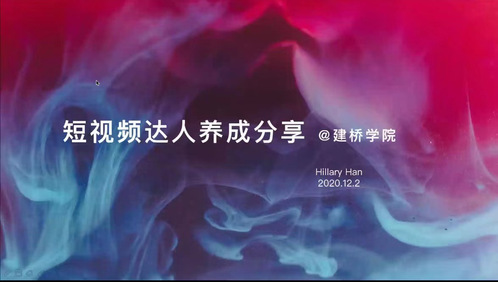 12月2日下午,职业技术学院商务英语专业展开线上“短视频达人养成”分享会。分享讲座由商务英语专业主任臧玉洁主持,全体商务英语专业学生参加,主讲人为特赞业务副总监、前艾瑞咨询总监韩怡。