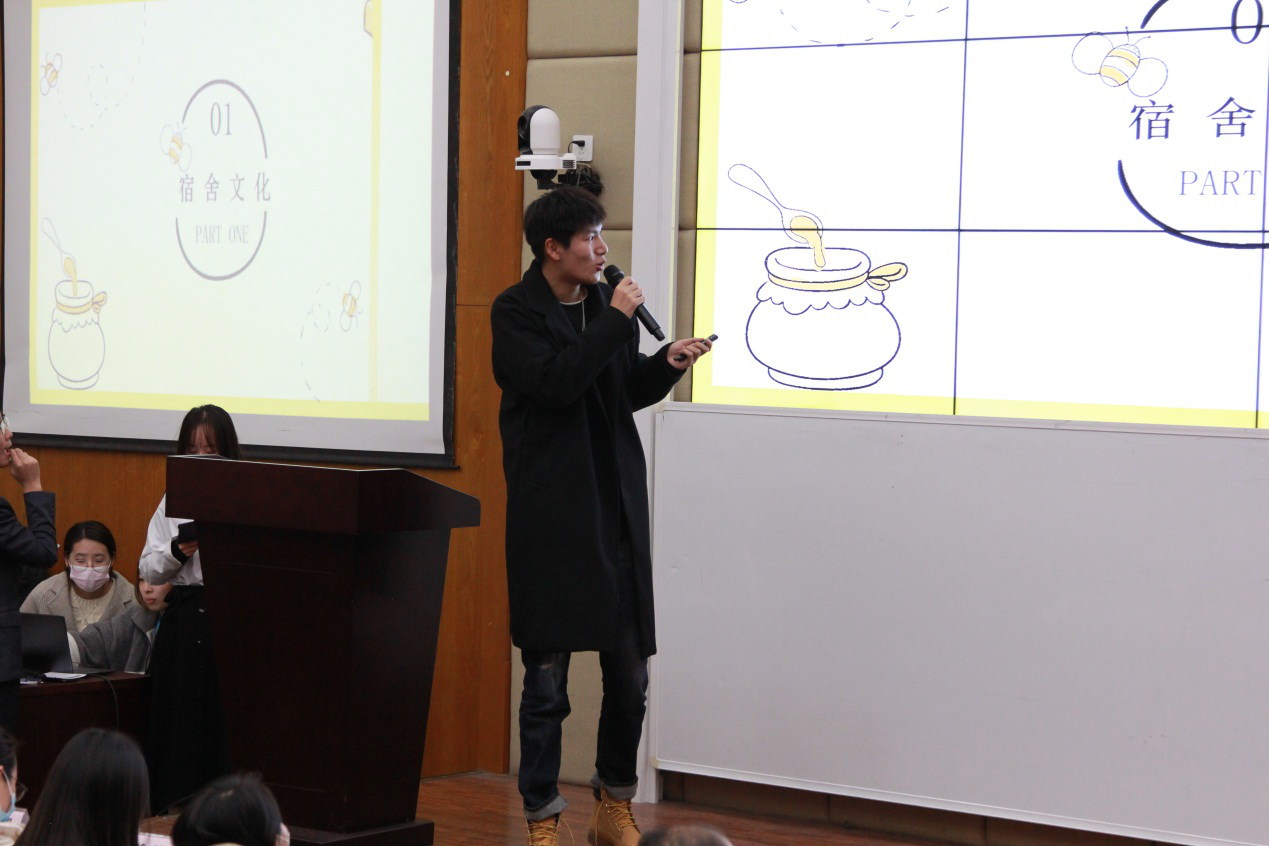 寝室是同学们学习、生活的重要场所,也是漂泊在外异地游子避风的港湾,更是展示学生们良好精神风貌的重要窗口。为进一步推进学生社区“三级建家”建设,促进学生良好习惯的养成,共同营造健康、活泼、文明的学生社区育人环境。12月3日,后勤保卫处学生社区服务中心在三教222举办2020年第一届最美“模范之家”评比大赛。旨在通过对“模范之家”寝室的评比活动树立模范寝室在全校学生中良好的示范作用,带动学生们积极学习身边典型,感受榜样力量,营造创优争先的优良学风,促进校园精神文明建设。后勤保卫处处长杨真真、各学院社区辅导员、后勤相关管理人员及园区宿舍主管出席了本次活动。