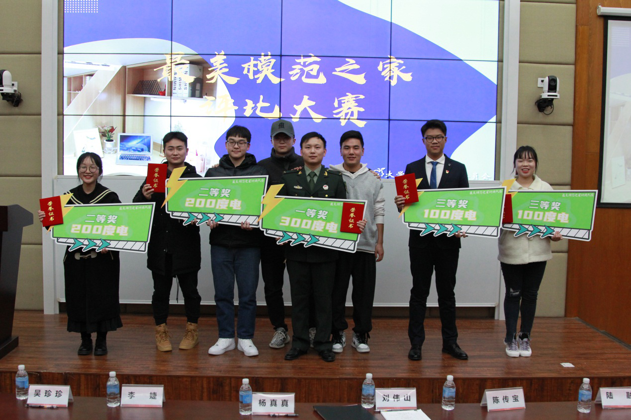 经过激烈的角逐,由后勤领导、各社区辅导员及宿舍园区主管组成的评选委员会,以寝室文化、人际交往、个人能力、团队能力等因素进行打分,最终评选出南4-215、南9-407、北4-3046、南9-518、南4-109、南12-606共6间寝室分别荣获一、二、三等奖。