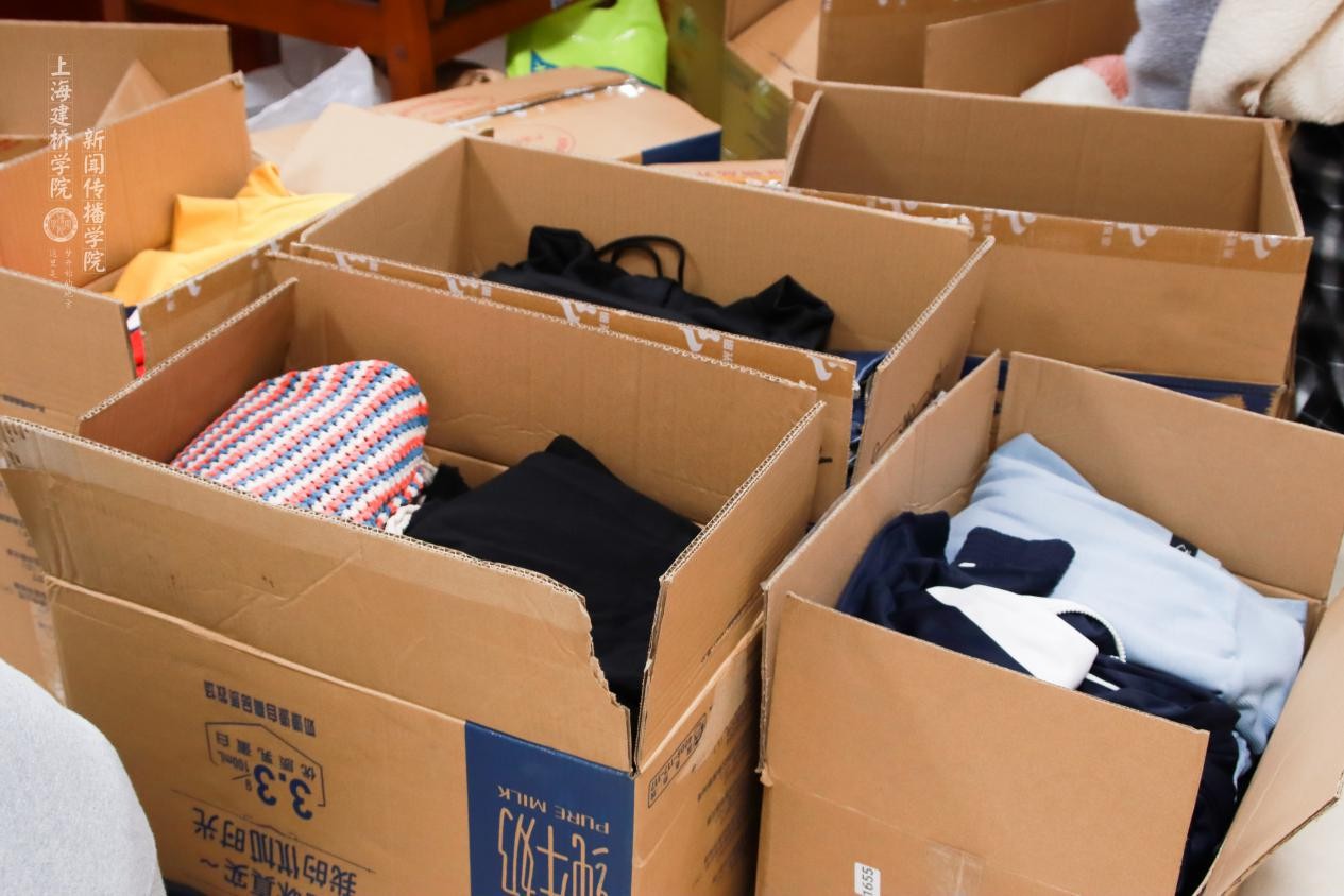 除此之外,干事们还负责整理同学们捐赠的衣物,井然有序、互相配合完成衣物捐赠活动。