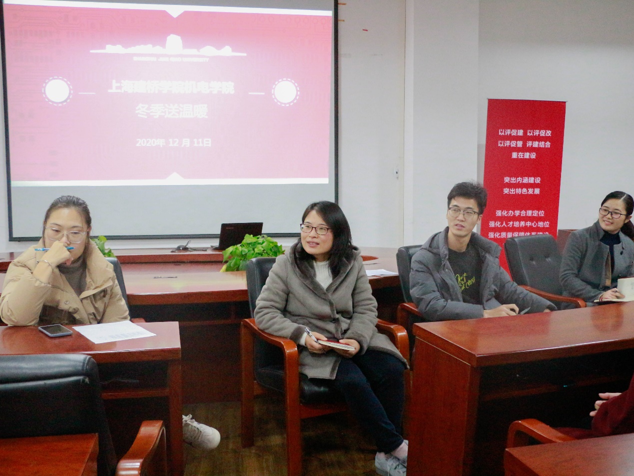 12月11日下午,机电学院冬季送温暖活动成功举办。机电学院党委副书记马秀娟、分团委书记张楚成、辅导员宋培培和苏东老师出席本次活动。