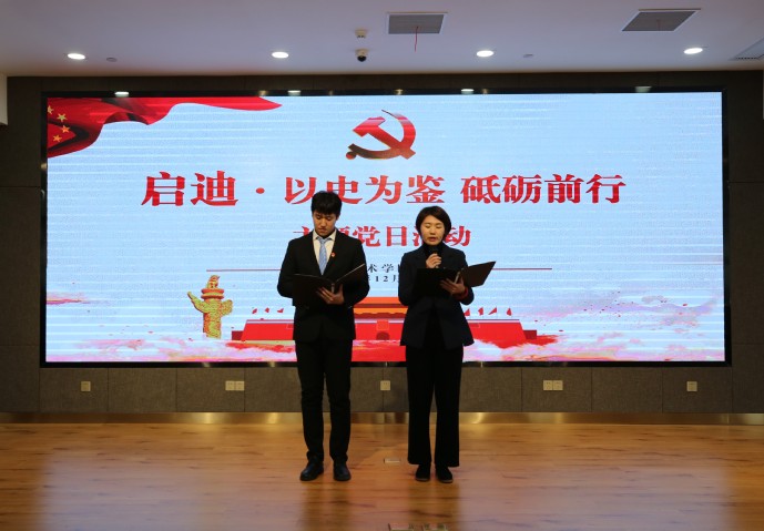 为深入推进“四史”学习教育,加强师生党员党性修养,信息技术学院党委持续推进优秀党建品牌建设,12月24日在珠宝学院报告厅开展以“启迪·以史为鉴,砥砺前行”为主题的党日活动。通过“四史”知识竞赛,深化“四史”学习教育成效;通过视频配音,丰富活动内容和形式;通过党史剧表演,带领广大师生回顾党史,弘扬优良党风。信息技术学院全体老师和学生党员代表参加,校组织部副部长施荣瑜老师与会。