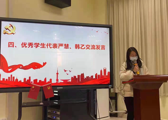 随后,深入指导帮助党员、学院优秀党员发展联系人赵磊老师,学习强国工作推进先进代表日语系支部书记杨晓兴以及严慧、韩乙两位优秀学生代表先后发言分享了各自的学习感悟和体会。