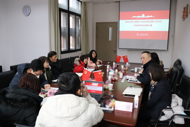 1月7日,中国银行自贸试验区新片区分行行长周乐一、副行长施利英、个金部主管吕竹芸、分行党务干事邓凡宇一行赴商学院开展交流共建活动,商学院党委书记刘爱香、院长高健、副院长周英芬、副书记王晨岑出席活动。