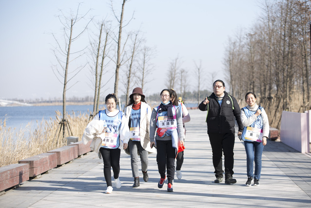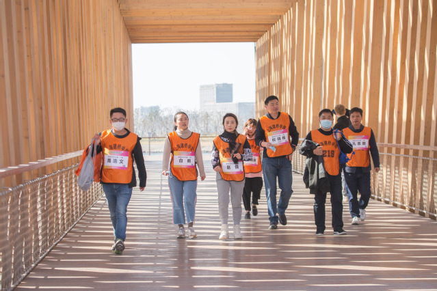 健步走过程中,大家结伴同行,一路上欢声笑语。有的相互交流工作心得,有的和好友聊聊家常。为了能让徒步活动增添一些乐趣,徒步协会还为本次徒步走活动做了路线规划和方案设计,为三组参赛队员在近6公里的行程中设置了5个打卡点,参与者需要在打卡点完成打卡。