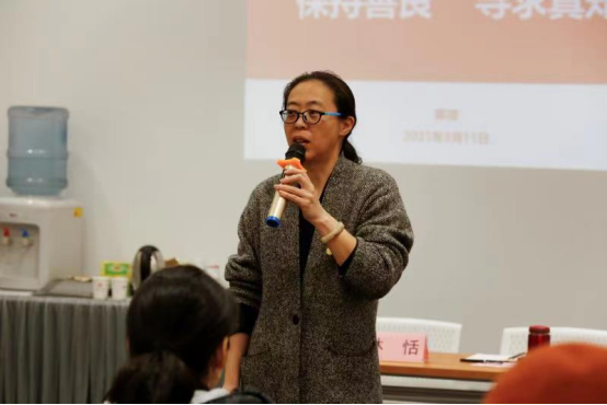 随后,陈洁院长做“保持善良,寻求真知”主题发言。她认为相对于其他专业学院,教育学院(通识教育学院)要更关注人本身。她鼓励教育学院(通识教育学院)教师既要言传,更要身教。教师自身要保持对真相的好奇与探索,做好集体的一员,有持续获得幸福的能力。教师应对自身的职业保有敬畏与奉献之心,倾听学生,与学生一起成长。