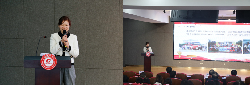 荣获上海市教育系统三八红旗手的马克思主义学院教师李兰和荣获上海市三八红旗集体的新闻传播学院广告系副主任鄢霞作为获奖个人和集体代表先后发言。李兰老师是我校诸多优秀女教职工的代表,她克服工作和生活上的压力,如期完成了博士学业,工作上高标准要求自己,积极参加各类教学竞赛,获得上海市高校教师思政课教学竞赛二等奖、上海市“青教赛”优秀奖。新闻传播学院广告系是一个优秀的集体,2019年广告学专业被评为上海市一流本科建设项目,2021年由鄢霞副主任领衔的《新媒体技术与应用》课程被评为上海市一流本科课程,在全校率先实现了专业和课程双一流,使我校课程建设提高到一个新的高度。她们拼搏进取的事迹展现了新时代女性的巾帼风采,鼓舞了所有女同胞。
