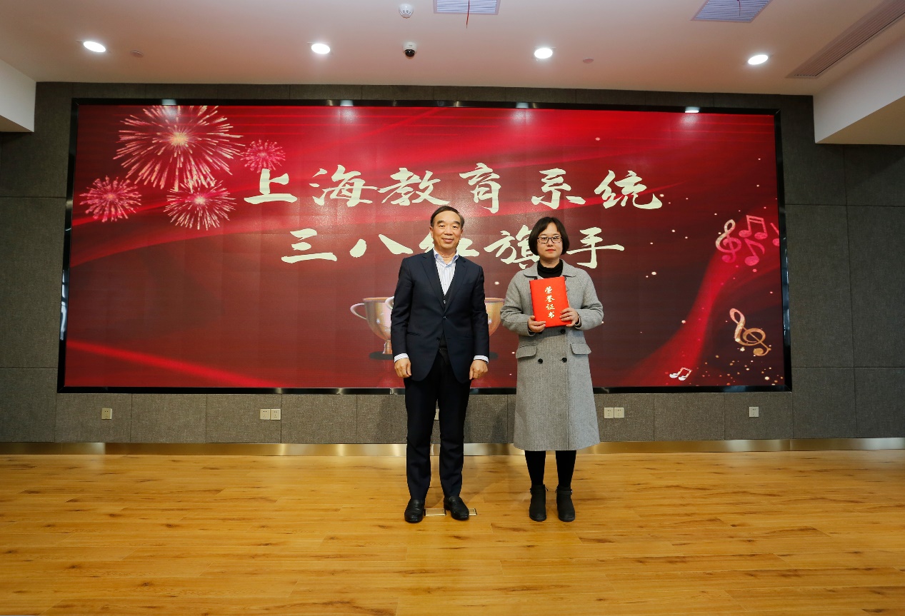 校党委副书记、工会主席夏雨宣读获2019-2020年度三八红旗手、三八红旗集体表彰决定,校领导分别为获奖三八红旗手(集体)颁奖。