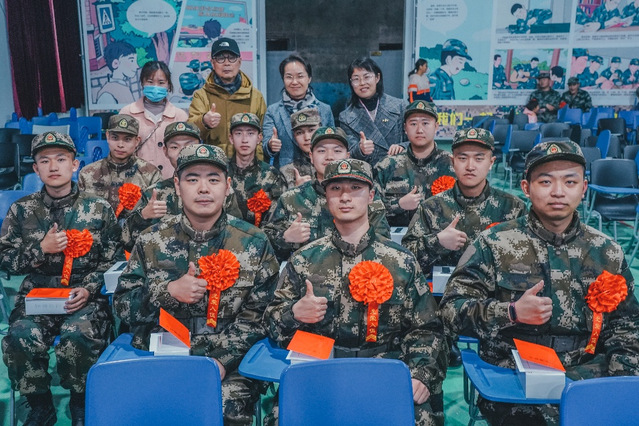 3月17日,在我校副校长、学生处处长、武装部部长陈伟的带领下,职业技术学院党委书记王加宁、副书记潘明芸,学院征兵负责老师庞雪雅一行前往浦东新区役前训练基地,看望慰问学院参加集中役前训练的11名春季应征新兵。王加宁书记仔细询问每位新入伍学子集训的生活状况和分配去向情况,鼓励他们在部队锤炼自己,牢记自己的使命和担当,以优异的成绩、出色的表现为母校争光添彩,做一名卓越建桥人。(供稿:职业技术学院)