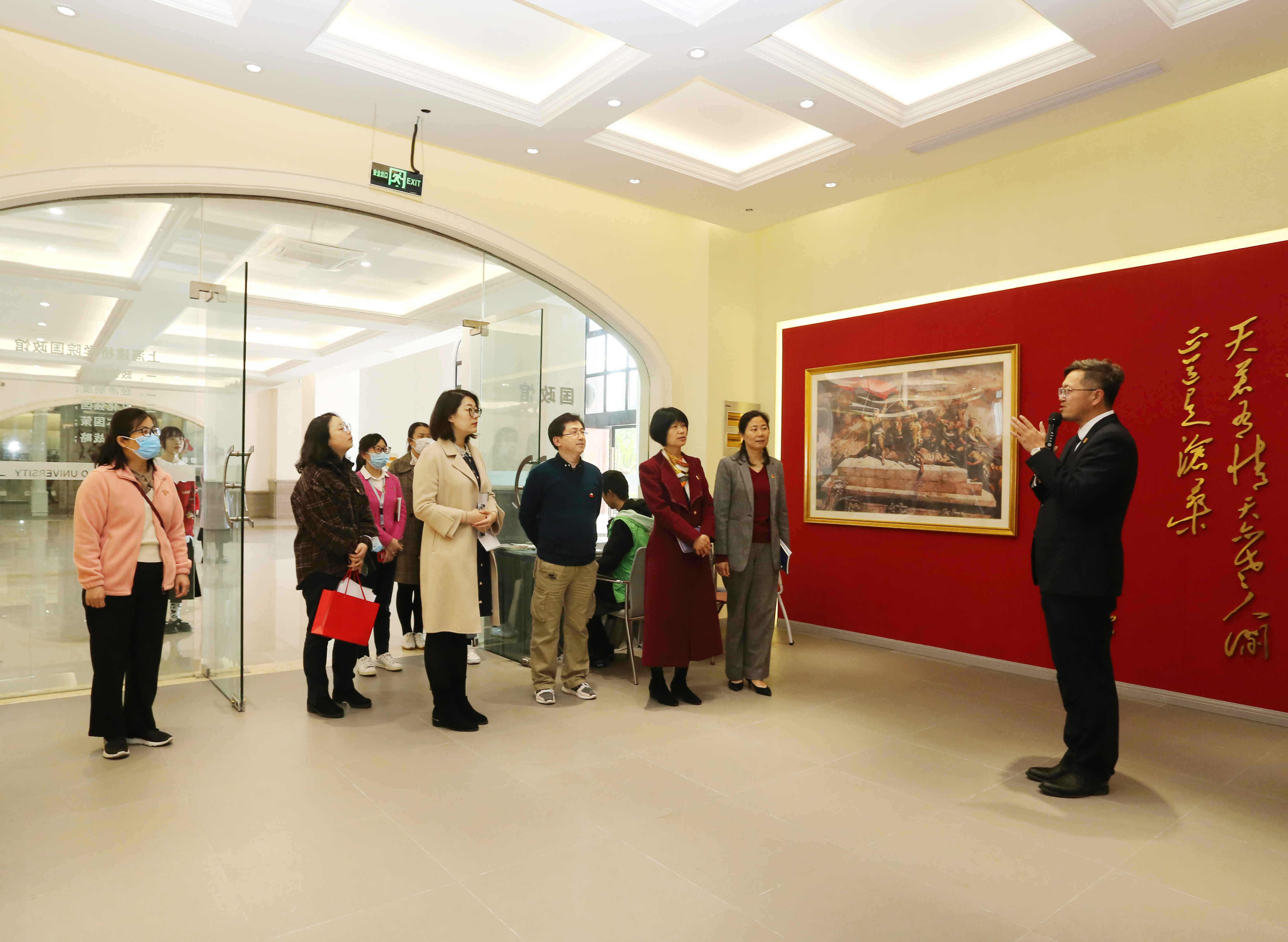 交流中,双方党支部书记分别介绍了各自支部的建设情况,共同观看了上海建桥学院20周年视频,参观了我校国政馆和雷锋馆并合影留念。