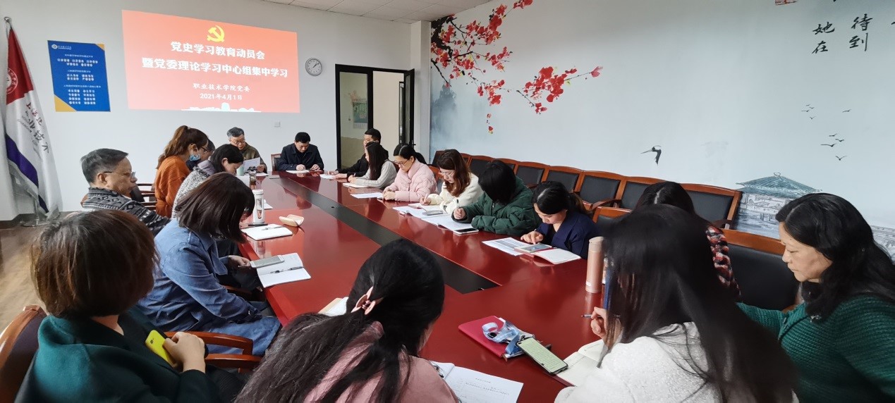 4月1日上午,职业技术学院召开党史学习教育动员会暨党委理论学习中心组集中学习活动。会议正式启动党史学习教育,部署党史学习工作具体安排。党委理论学习中心组开展学期首次集中学习活动,专题学习习近平总书记在党史学习教育动员大会上的重要讲话精神。学院领导班子成员谷伟、汤以范、潘明芸出席,学院党委委员、各党支部书记、各专业(实训中心)主任参加,会议由王加宁书记主持。