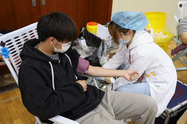 献血当天,活动现场分为登记区、体检区、献血区、留观区,血站工作人员和校志愿者向前来参与献血的同学详细介绍献血的注意事项,细心询问身体状况、近期用药和作息情况。在填完《无偿献血登记表》后,经由志愿者的引导,同学们有序完成了身份验证、化验、健康检查等步骤,现场秩序良好。整个活动现场,不论是献血者还是志愿者,都在用自己的实际行动传递着关怀与爱。
